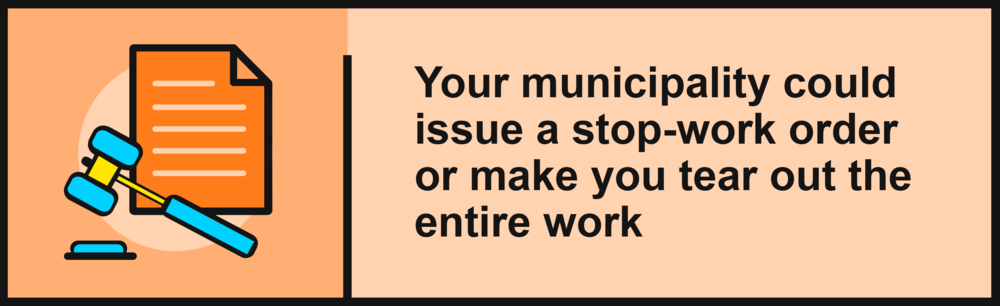 It's a nightmare to think about, but it means big trouble if your municipality or city office finds out you’re renovating sans-permits. Some cities will only inspect, but some will issue a stop-work order and may even slap a hefty fine on both the homeowner and contractor. Worse still, the city could order a teardown of the entire project with a subsequent order to redo any work done with the proper permits finally in hand.